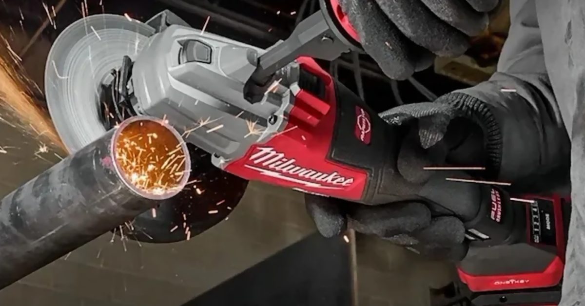 Milwaukee Tool’s new M18 FUEL dual-trigger 4 1/2″-6″ electric angle grinder makes up to 5.8 hp – that’s the equivalent of 70 cc of ICE power to deliver faster cutting, fewer stalls, and up to 135 cuts on 1/2″ rebar on a single battery charge.