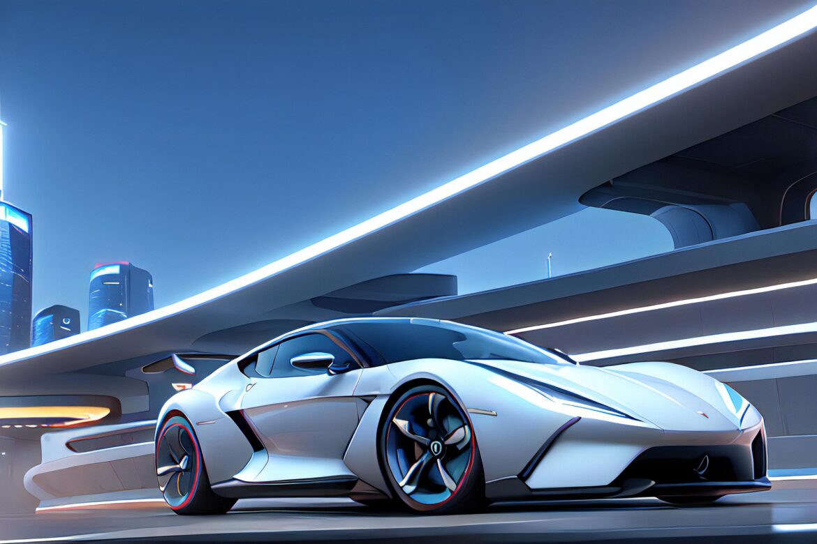3d rendering driverless car or autonomous car plug in with ev charging station