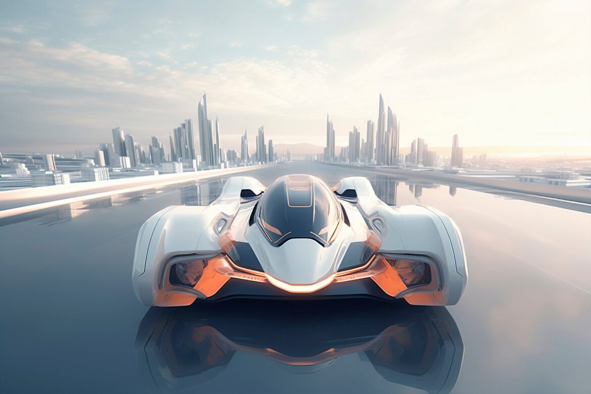 3d rendering driverless car or autonomous car plug in with ev charging station