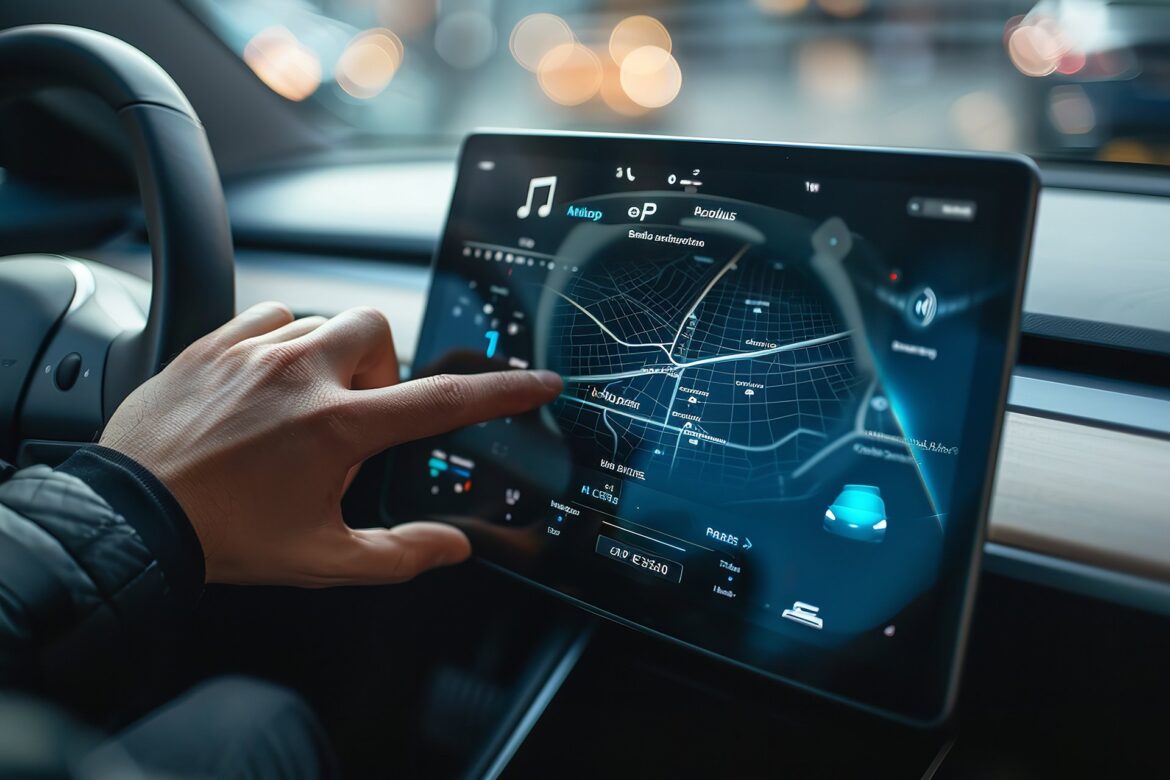 3d rendering driverless car or autonomous car plug in with ev charging station