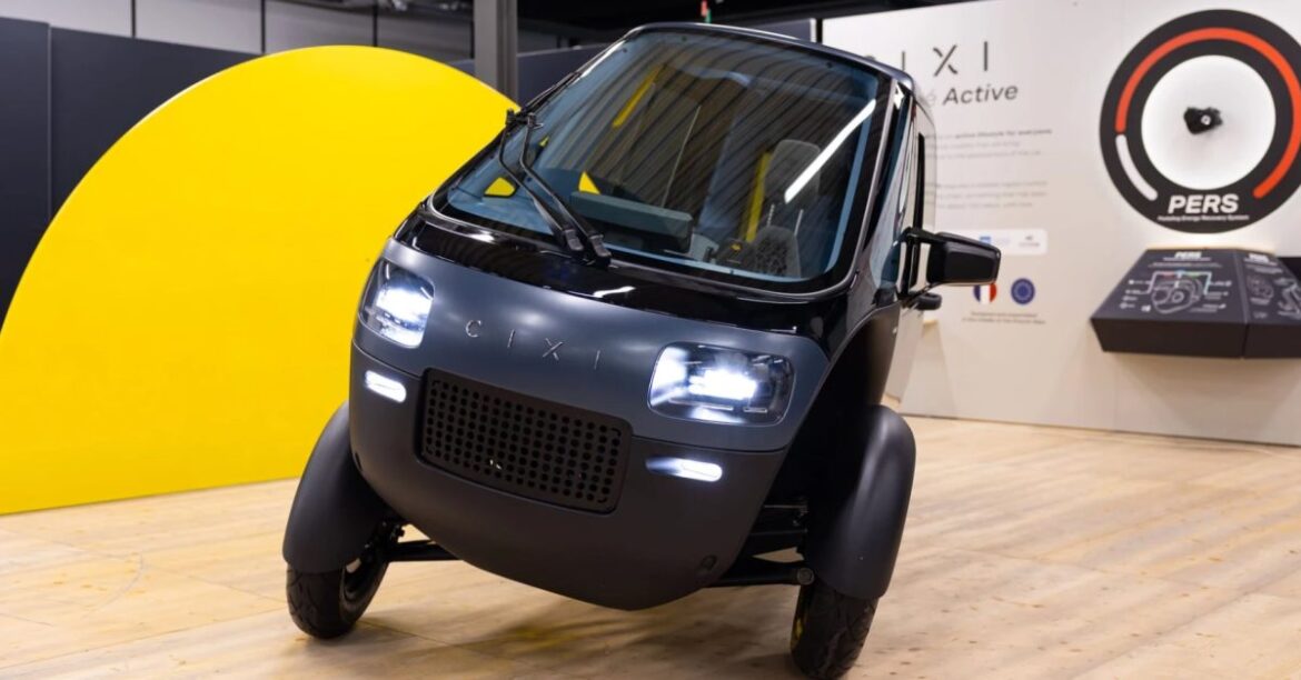 I’m not sure if it’s technically an electric “car” since it only has three wheels, but it’s definitely an electric vehicle. I don’t think we can quite call it an electric bike (or e-trike) either when it’s fully enclosed and looks more like a modern take on a classic Fiat than something you’d see cruising the Paris bike lanes.